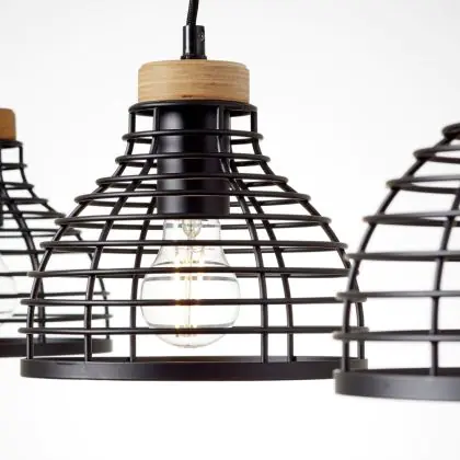 Brilliant Avia Pendelleuchte Metall Holz Schwarz Holz | Geeignet für 3x E27