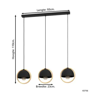 Eglo Pendelleuchte Callow Stahl Holz Schwarz Braun | IP20 - Geeignet für 3x E27
