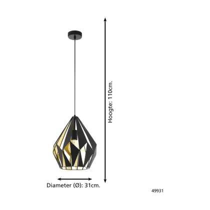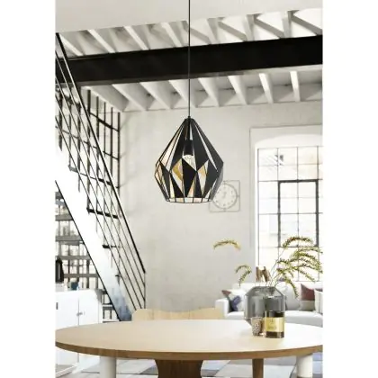 Eglo Pendelleuchte Carlton 1 Stahl Schwarz Gold | IP20 - Geeignet für 1x E27