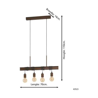 Eglo Pendelleuchte Townshend 4 Stahl Braun | IP20 - Geeignet für 4x E27