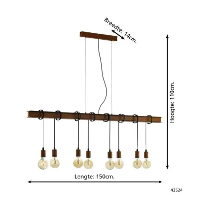 Eglo Pendelleuchte Townshend 4 Stahl Braun Schwarz | IP20 - Geeignet für 8x E27