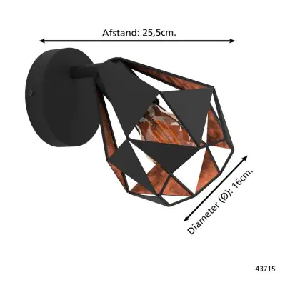 Eglo Wandleuchte Carlton 7 Stahl Schwarz Bernstein | IP20 - Geeignet für 1x E27