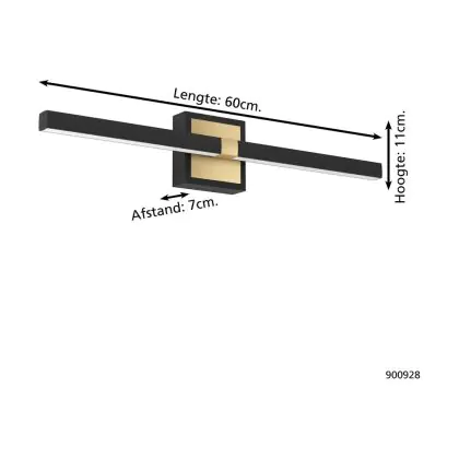 Eglo Wandleuchte Peguera Aluminium Stahl Schwarz 11W 1165lm - 830 Warmweiß | IP44