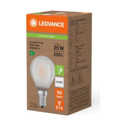 Ledvance LED Classic E14 Birne Fadenlampe Matt 1.2W 255lm - 840  | Ersatz Für 25W