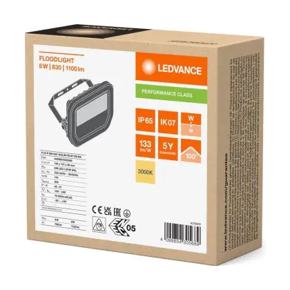Ledvance Led-Scheinwerfer Aluminium Schwarz 8W 1100lm 100D - 830 | IP66 - Symmetrisch