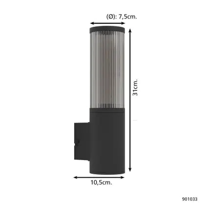 Eglo Applique Murale Salle Extérieur Aluminium Noir | Convient pour E27
