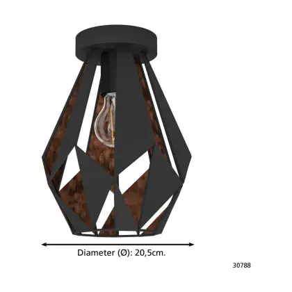 Eglo Plafonnier Carlton 1 Échantillon Noir Cuivre | IP20 - Convient pour 1x E27