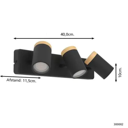 Eglo Plafonnier Consuma Noir, Brun | Convient pour 3x GU10