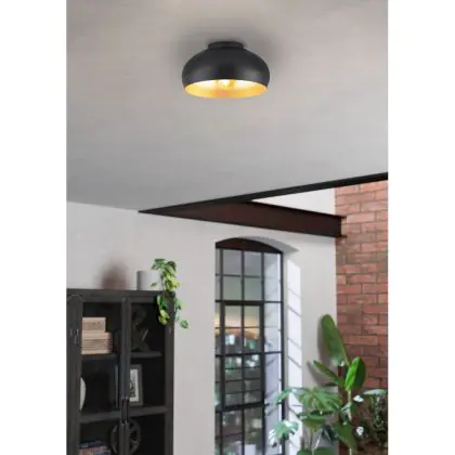Eglo Plafonnier Mogano 2 Noir, Dorée | Convient pour E27