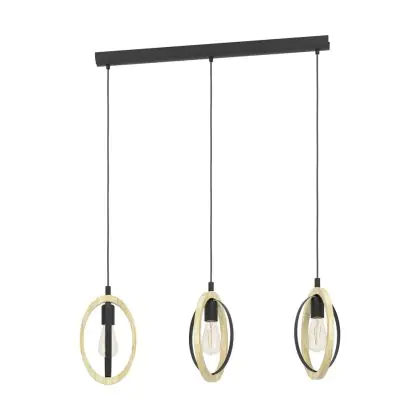 Eglo Suspension Luminaire Basildon Échantillon Bois Noir Brun | IP20 - Convient pour 3x E27