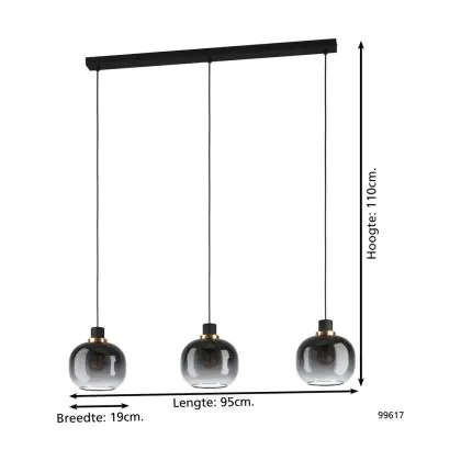 Eglo Suspension Luminaire Oilella Échantillon Noir Dorée | IP20 - Convient pour 3x E27
