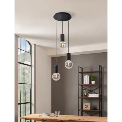 Eglo Suspension Luminaire Pozueta Échantillon Noir | IP20 - Convient pour 3x E27