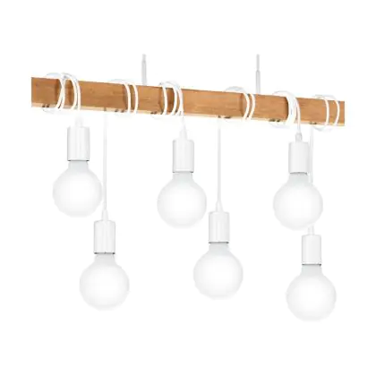 Eglo Suspension Luminaire Townshend Échantillon Blanc Bois | IP20 - Convient pour 6x E27