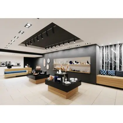 Un luminaire inclinable permet de diriger la lumière spécifiquement sur un objet ou une surface. Cela peut jouer un rôle particulièrement important dans les magasins (mettre en valeur une nouvelle collection) ou les galeries (accentuer les œuvres d'art). Il peut également influencer le comportement d'achat ou l'interprétation des visiteurs.