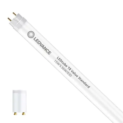 Ce tube LED Ledvance tube LED 120cm | 3000K 15W - Value est l’un des produits les plus éconergétiques en remplacement des tubes T8 classiques. Avec ce tube LED vous êtes donc assuré de sa qualité. Avec une puissance de seulement 15 W, ce tube LED a la même intensité lumineuse qu’un tube classique qui consomme 36 W.