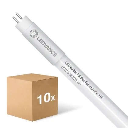 Ce tube LED Lot 10x Ledvance Tube LED T5 Performance (Direct 230V) High Efficiency 16W 2400lm - 840 | 115cm - Remplacement 35W est l’un des produits les plus éconergétiques en remplacement des tubes T5 classiques. Ce tube LED est produit par Ledvance, vous êtes donc assuré de sa qualité. Avec une puissance de seulement 16 W, ce tube LED Ledvance a la même intensité lumineuse qu’un tube classique qui consomme 28 W.