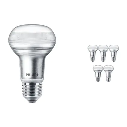 La lampe LED Lot 6x Philips Corepro LED Spot E27 R63 3W 210lm 36D - 827 Blanc Très Chaud | Équivalent 40W avec culot E27 (Ampoule à vis standard) est le remplacement idéal des lampes à incandescence et halogènes classiques. En raison de la faible consommation d'énergie, vous économisez considérablement sur vos coûts d'énergie. Les lampes à LED Philips n’utilisent qu’une petite partie de la puissance (3 W) que les lampes à incandescence et halogènes classiques (40 W). Les lampes à LED ont une excellente classe énergétique G, ce qui signifie qu'elles sont très écologiques et peuvent être recyclées après utilisation. En raison de leur durée de vie considérable de 15000 heures, vous n’aurez pas à les changer de si tôt.
