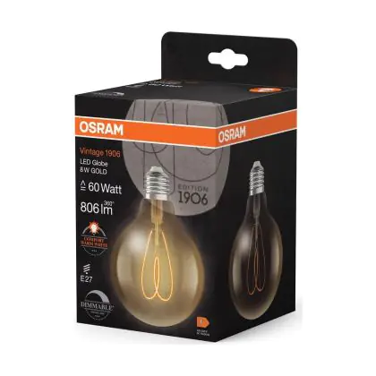 Description Osram Vintage 1906 LED E27 Globe Filament Dorée 8W 806lm - 922 | Meilleur Rendu De Couleur - Dimmable - Remplacement 60W