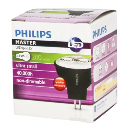 Description Philips Master LED Spot GU4 MR11 3.5W 200lm 24D - 827 Blanc Très Chaud | Équivalent 20W
